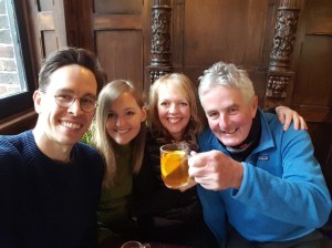 However I was determined to see my niece Jane get married in Staffordshire on Saturday, and we did! It was a lovely wedding. Neil drove the whole way and the roads were empty. My other determined plan was to spend Sunday with Cara in London as it was her 30th birthday, so Neil drove us down to Islington after the wedding speeches and we arrived at Cara and Andrew’s canal side flat at about 10.30pm. Sunday was perfect, spending it with Cara and Andrew, and then we drove home to Devon. What a happy weekend.