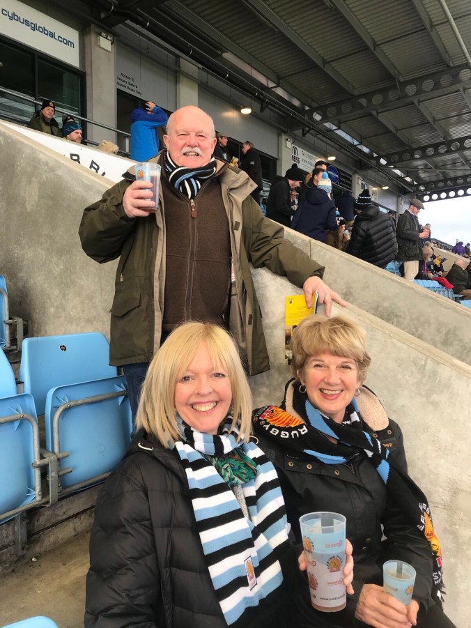 We had a busy Saturday. Jonny and Els and her Dutch sister and brother in law popped over Saturday morning, then we went to watch Exeter Chiefs play Worcester with David and Anita in the photo (Chiefs lost 😟) then dashed home to watch England beat Wales as well 😟. Wales plays Ireland on my birthday on 24th Feb so Neil and I will sit on different sofas that day! Neil spoke Welsh to open his speech at our wedding and the Welsh for ‘sofa’ is ‘sofa‘ which he enunciated with a strong Welsh accent, being the only word he understood. We were all in hysterics. What a happy day that was….. with many many many more to come. I’m soooooo excited!!!