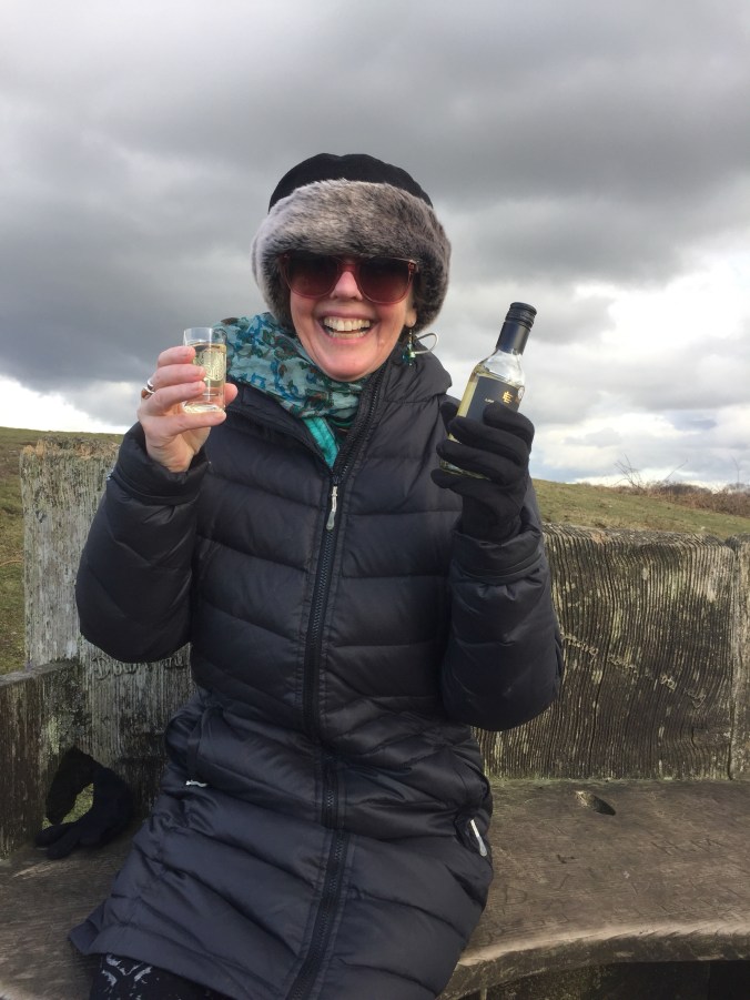 It snowed slightly this morning which was lovely, then we drove home from the hospital under blue skies and decided to walk up the beacon. WE DID IT TOO!!!! I felt fine. Wonderful in fact. Maybe the steroids I’ve been taking in preparation for the chemotherapy got me up there. Who knows?