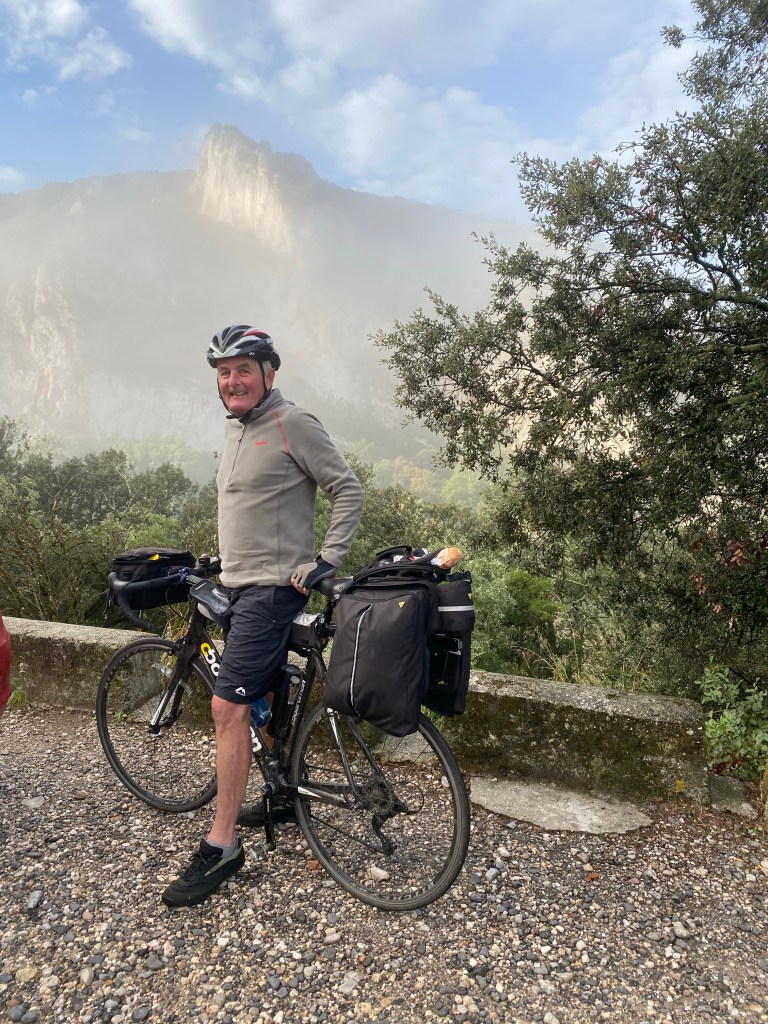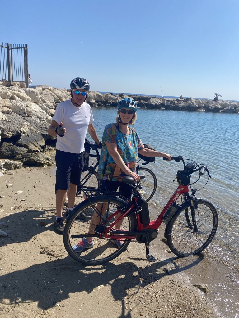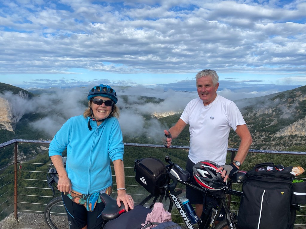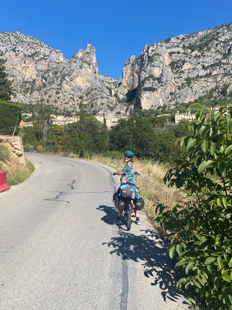 It’s our last day 😢. It’s actually 26 days cycling. We had such a cold start cycling over 1000m. Then we started to descend deep into the rocky gorges around endless hairpin bends. On and on we cruised and we were freezing! The minute we found sunshine we’d stop and warm up like lizards soaking up the suns rays. Then back into the chasms for another few kilometres. Lycra clad French slogged past us heading uphill, probably sweating from their efforts. Occasionally a waft of warm air would reach us reminding us of our destination, then the cliffs would close in and the cold returned. 30kms on we emerged into the sunshine…. and traffic! So much traffic. It was like another world to us. Finally we reached the glistening Mediterranean. We’d done it. We’d cycled from St Malo to Nice. The feeling is almost bewildering.