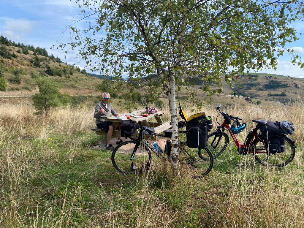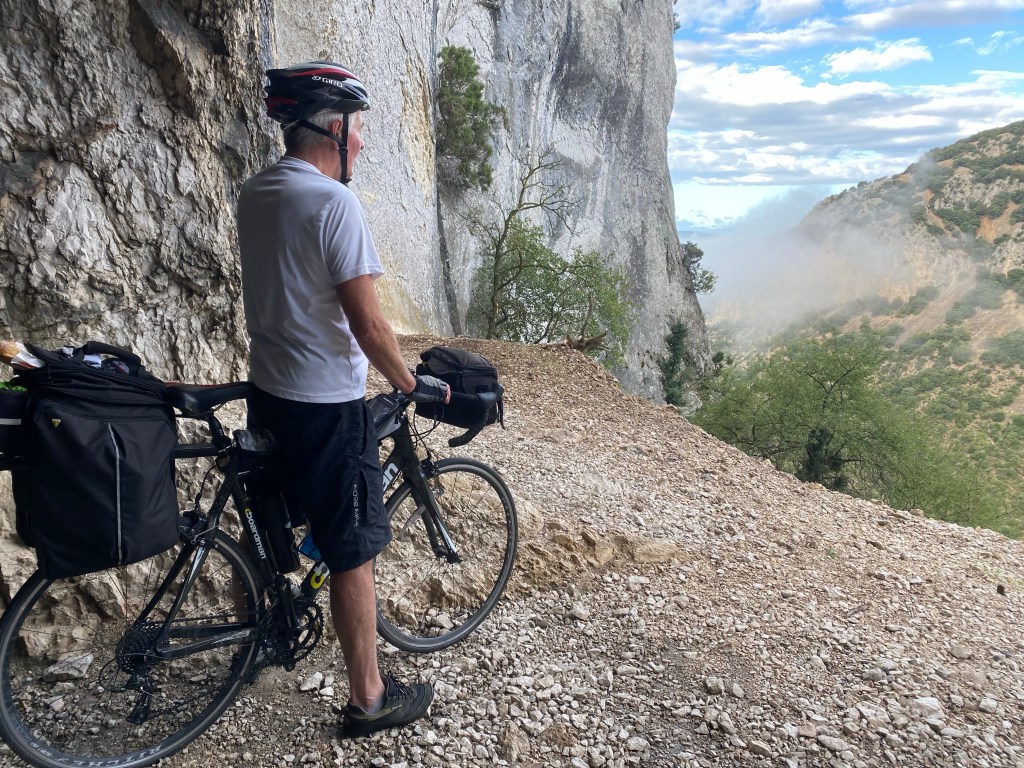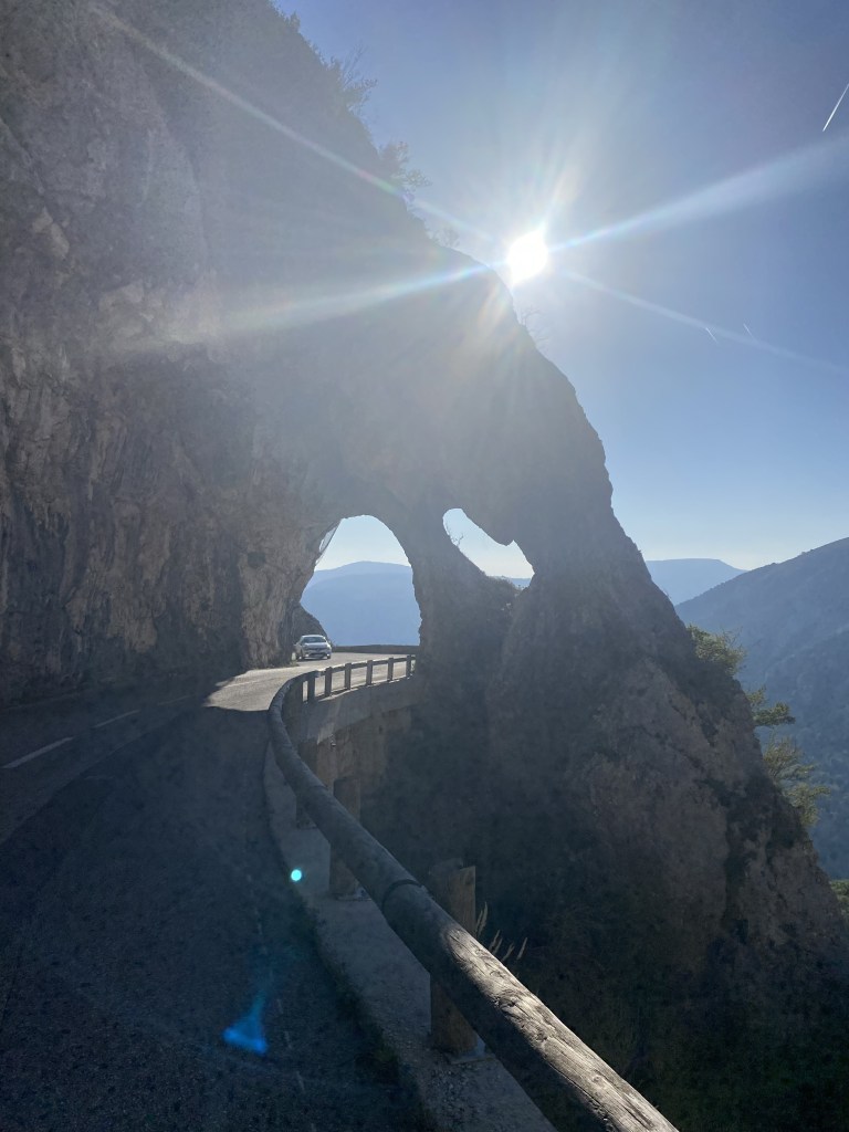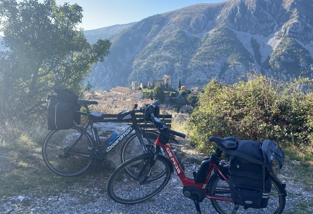It’s our last day 😢. It’s actually 26 days cycling. We had such a cold start cycling over 1000m. Then we started to descend deep into the rocky gorges around endless hairpin bends. On and on we cruised and we were freezing! The minute we found sunshine we’d stop and warm up like lizards soaking up the suns rays. Then back into the chasms for another few kilometres. Lycra clad French slogged past us heading uphill, probably sweating from their efforts. Occasionally a waft of warm air would reach us reminding us of our destination, then the cliffs would close in and the cold returned. 30kms on we emerged into the sunshine…. and traffic! So much traffic. It was like another world to us. Finally we reached the glistening Mediterranean. We’d done it. We’d cycled from St Malo to Nice. The feeling is almost bewildering.