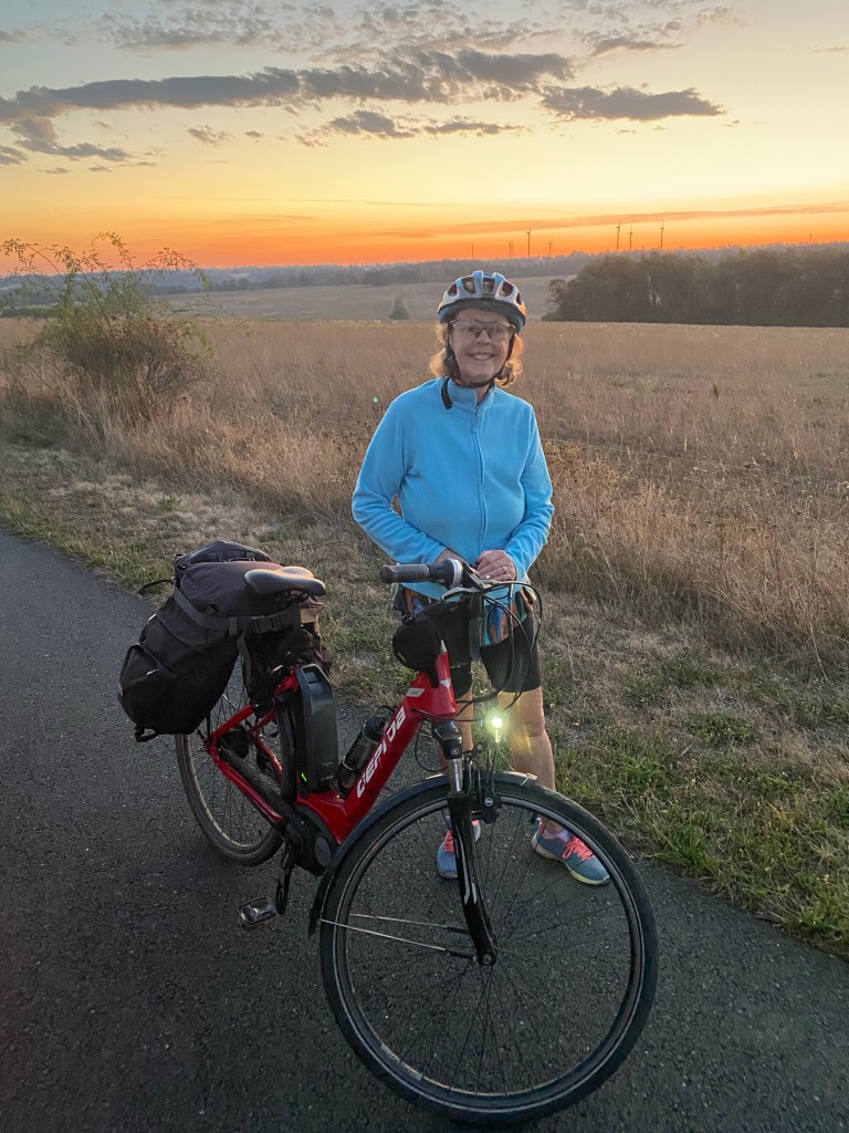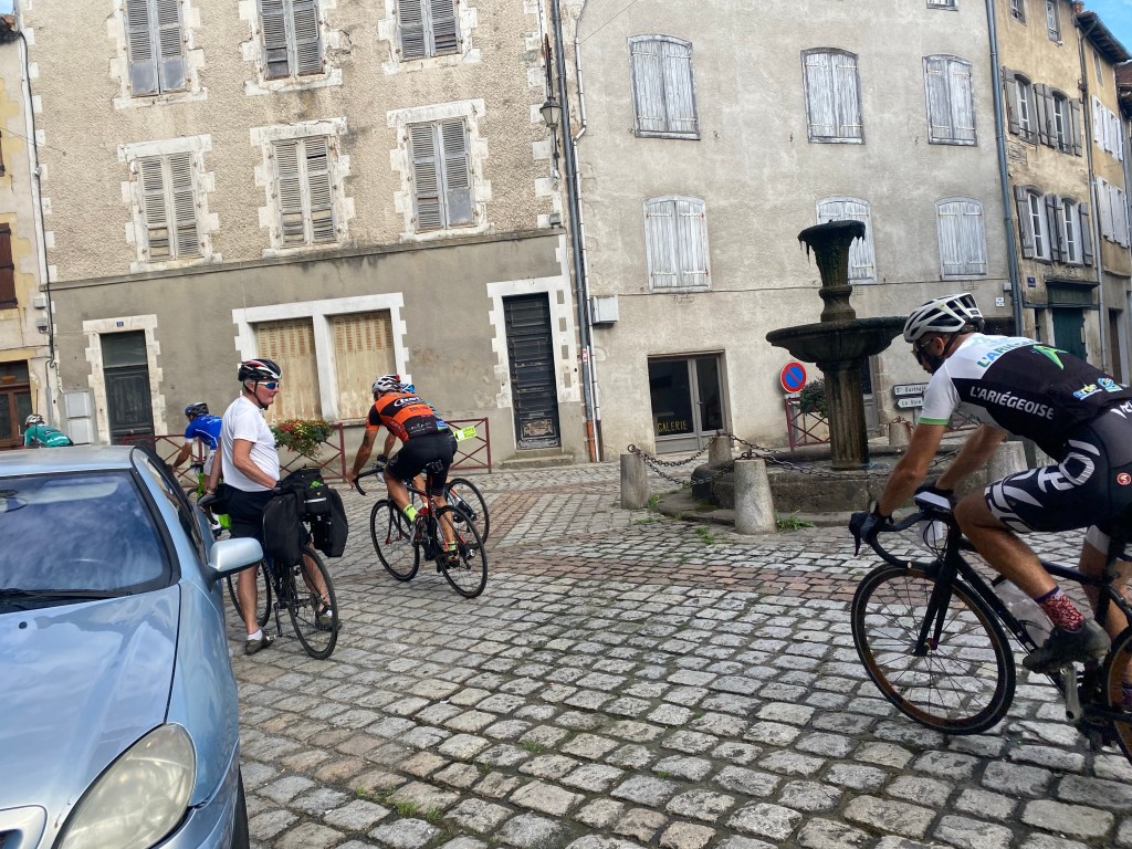 What a classic Neil/Ceri day full of twists, turns and surprises. We started off before dawn as usual, cycling up hill, singing with the larks as we watched the glorious sunrise. About 5km in Neil realised he’d left his credit cards at the hotel! We didn’t want to cycle that hill again, so we decided to keep cycling and I emailed to ask them to post them on. Amazingly, there was a bar open early Sunday morning in Lessac with a few ruddy faced characters propping up the bar sipping their first Rose of the day as we enjoyed our coffees and croissants. With no reply to my email, I called the hotel. The wonderful lady from the hotel found the cards, jumped in her car and drove a good 15 minutes to find us, leaving her hotel in the hands of the cleaning lady. Wow. What a kind lady – great fun too.