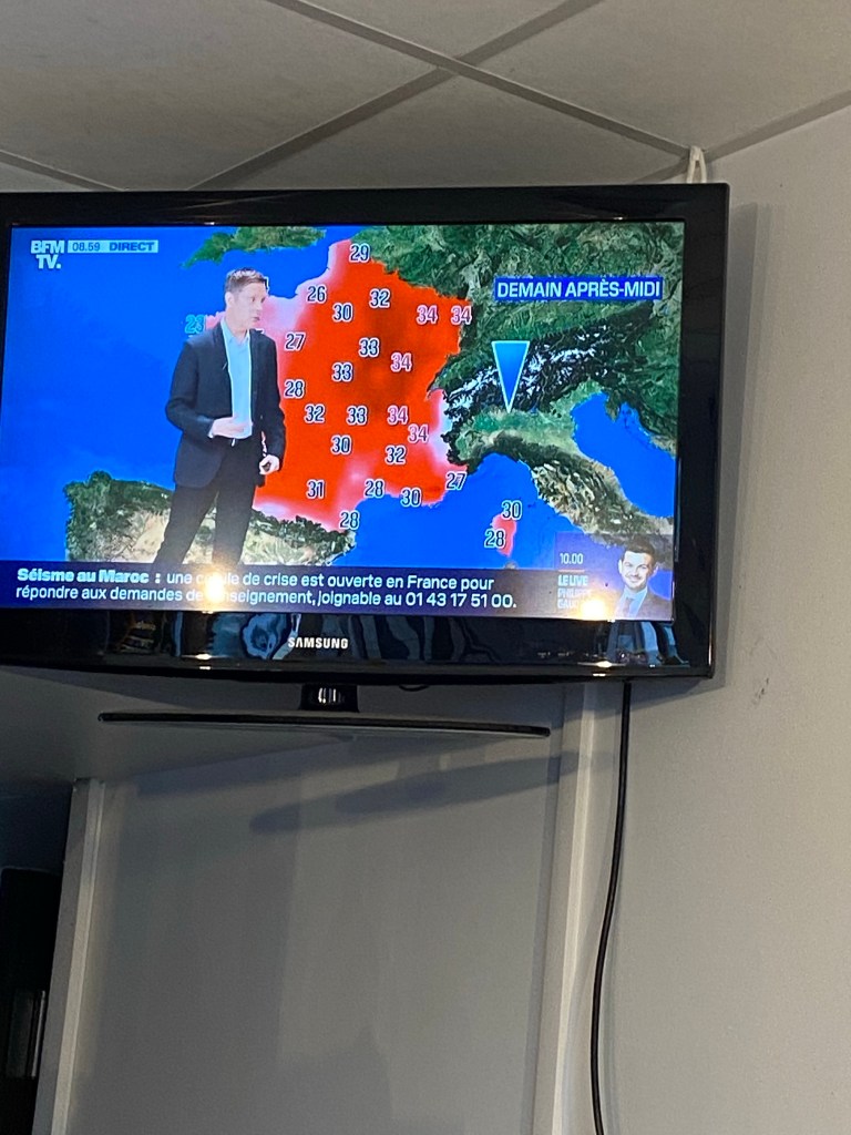 There’s very little accommodation in this area so after a lot of searching with maps and internet last night we found a chateau for tonight with yet another great restaurant. Because of the delays and swims, we ended up cycling for hours in the 35deg heat of the day up and down hills and we knew we’d be in trouble. I was OK as I could keep my heart rate down by pressing turbo on my bike. But Neil was cycling with no help up those hills. We stopped very regularly whenever we found shade and waited for Neils pulse to calm down, both of us swigging loads of water. Neil wasn’t exhausted but he was overheating.