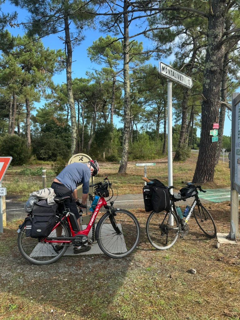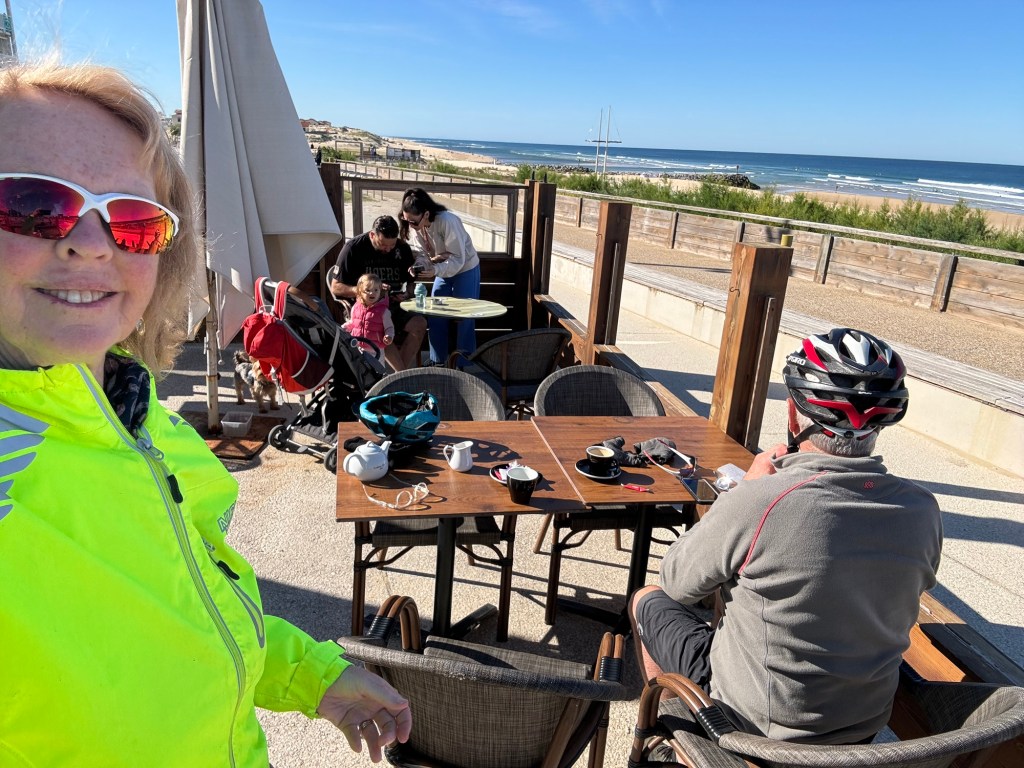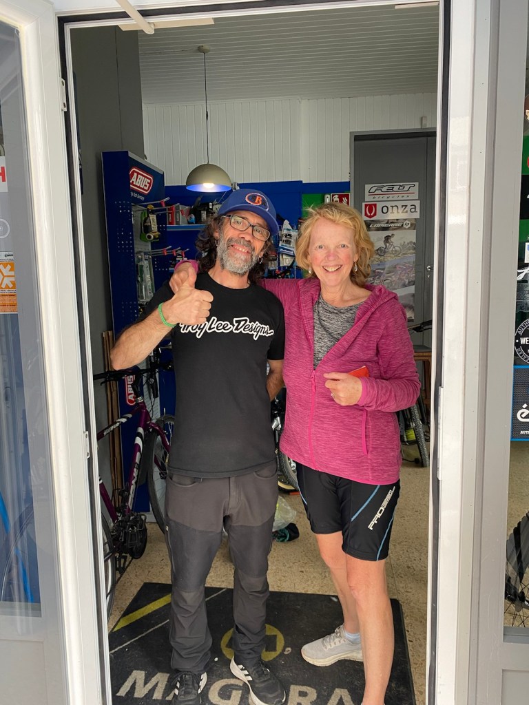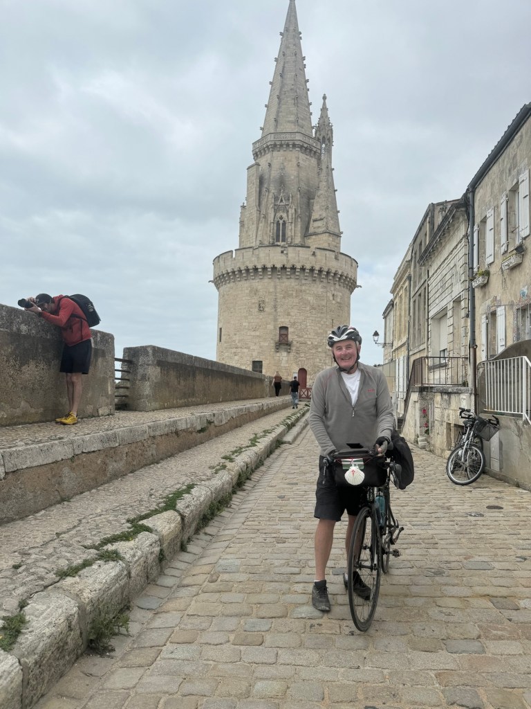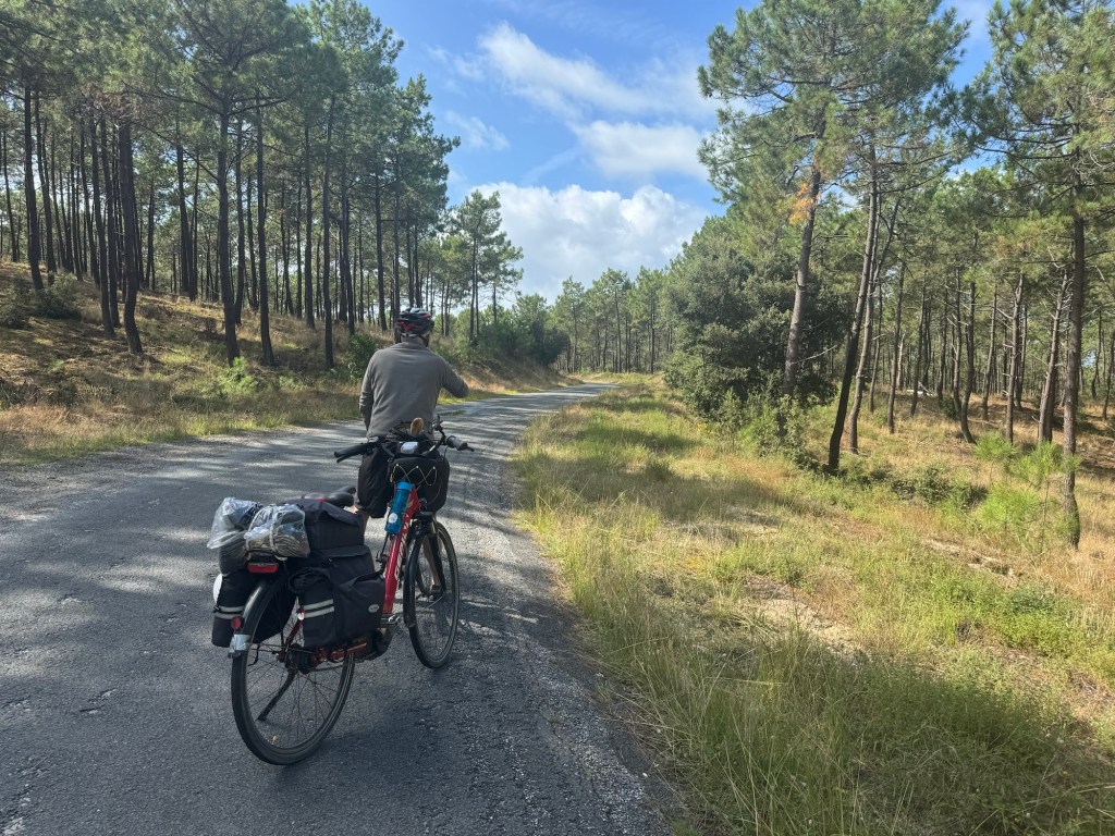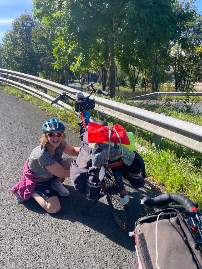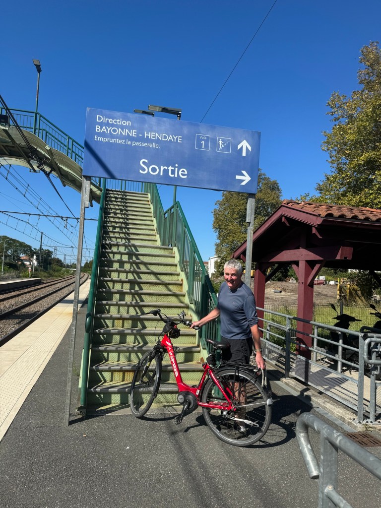 Today started (rather harshly) with a long, long hill and our day ended with an even longer hill, with more hills along the way, so now it feels far more than 49 miles. The final hill was a real challenge in the heat but with the prize of an absolutely stunning village at the end. We crossed open plains and cycled through quirky tunnels cut through mountains. We looked forward to cycling through ‘Miranda de Ebro’ as it’s such a lovely name, but were disappointed to find it was busy and dense with factories and noisy roads, bearing no resemblance to its beautiful name. At the start of the day I felt a little ominous about the rain clouds over the mountains, but by lunchtime they cleared giving us blue skies over vast plains full of sunflowers as the day heated up. No complaints! And I had a yet another puncture in a rather desolate and probably deprived area. A little old lady walked down the empty street in the distance while Neil fixed my bike so I took a photo. And finally the last long hill brought us to this beautiful ancient village where they’ve made salt since long before Roman times. It’s steeped in history which we’re about to explore. The Romans certainly have left their mark through most of the places we’ve cycled. We’ve encountered so many long straight road which seem to go on forever. I prefer bends, guessing what might lie around the corner! When we reached our destination, Neil was so hot he headed straight to the nearest bar for a beer while I checked the bikes in etc. He absolutely deserved that beer as it was a 7 km steady climb in the heat. Well done Neil. All in all, a good day.