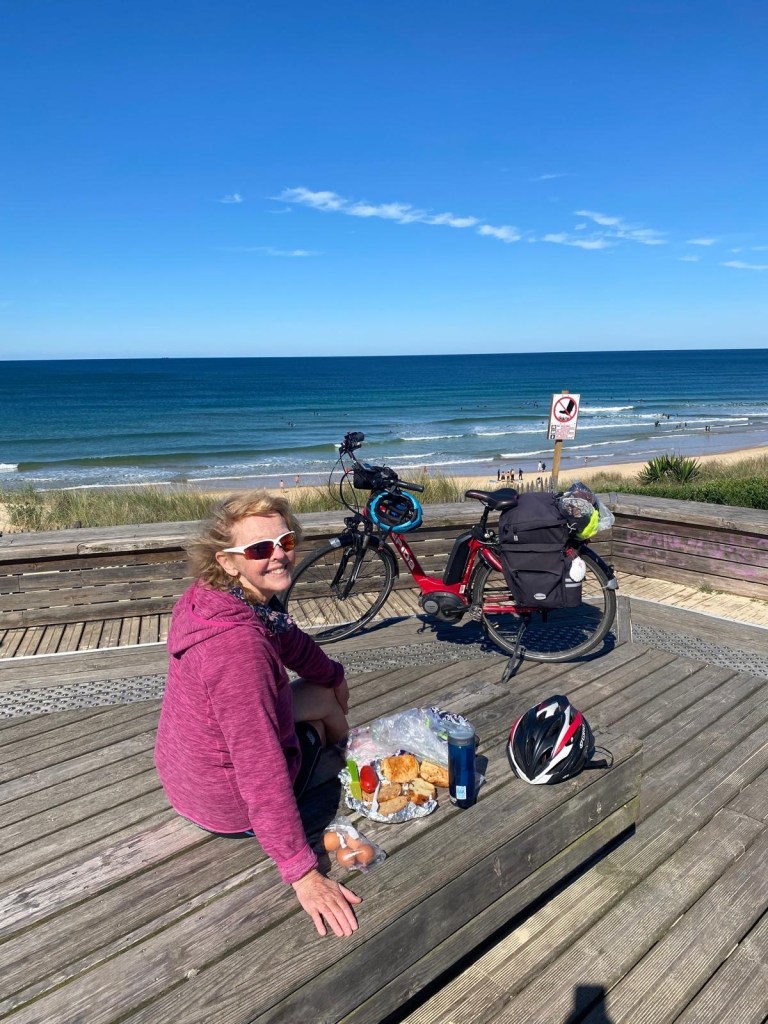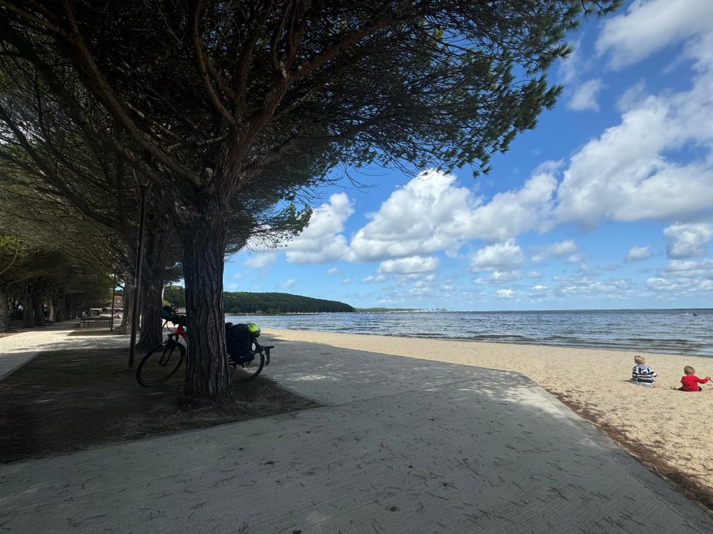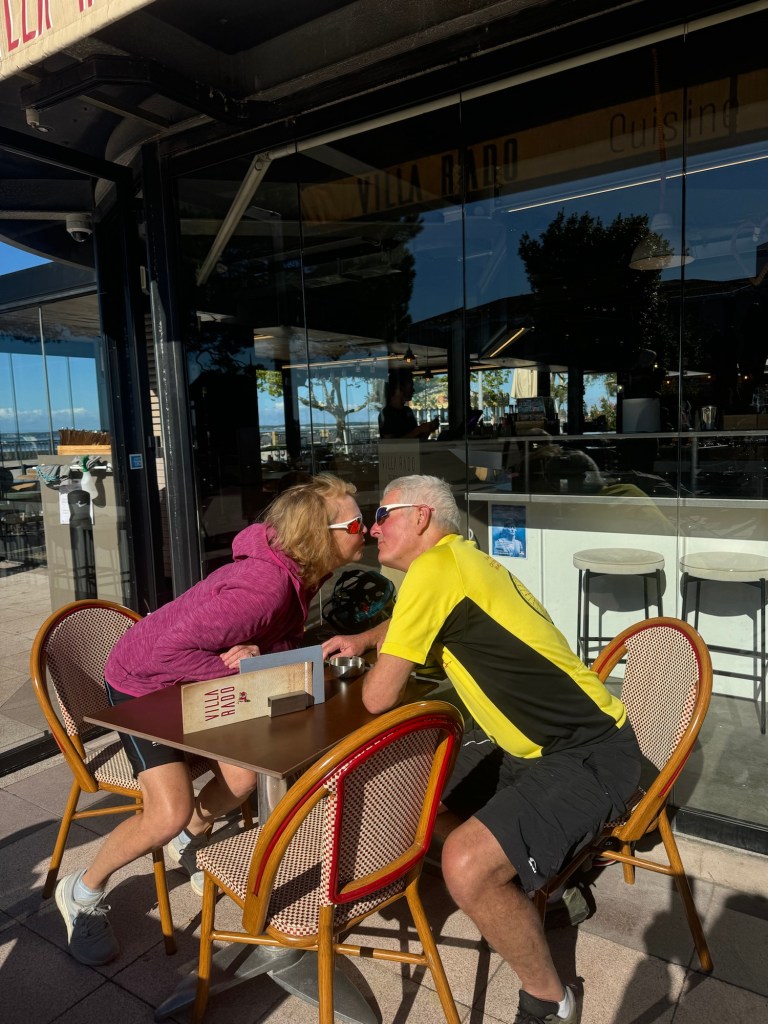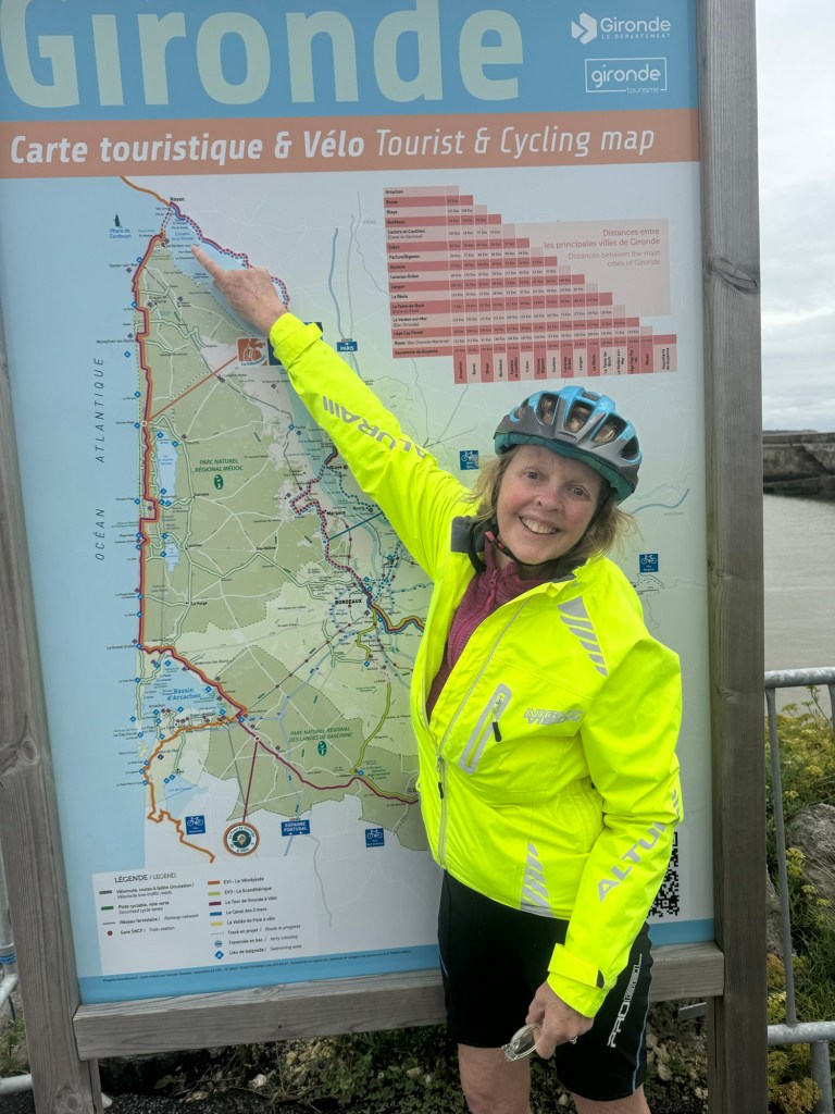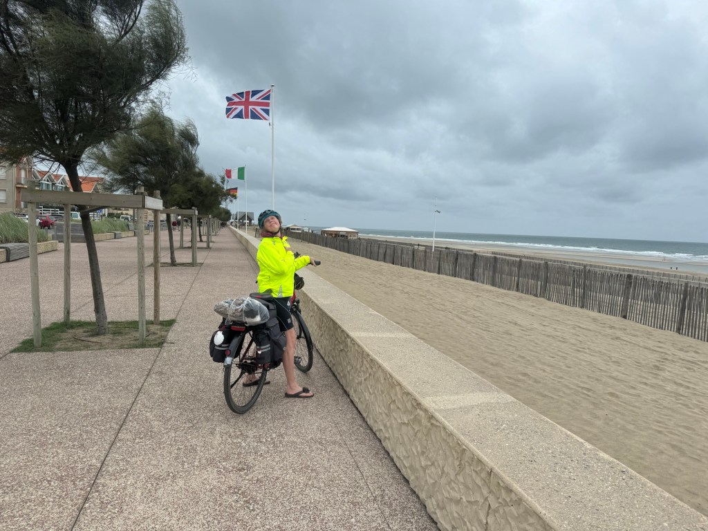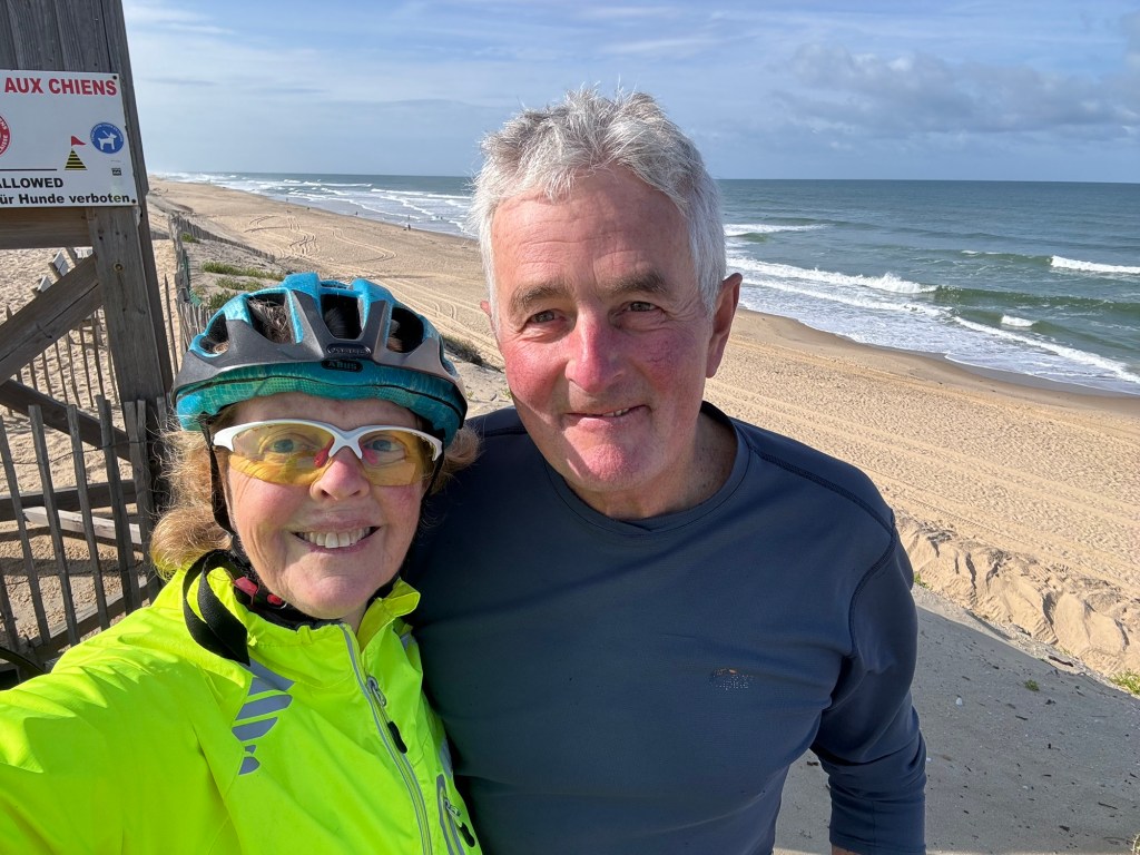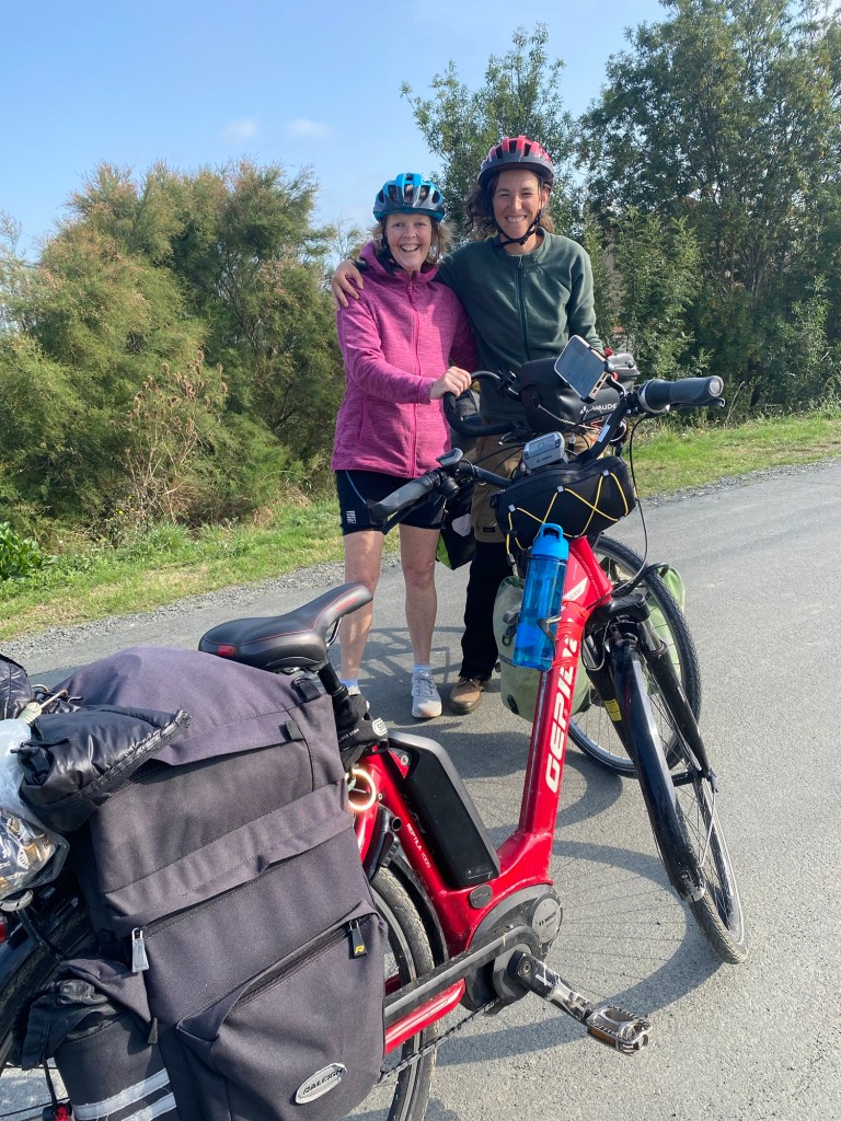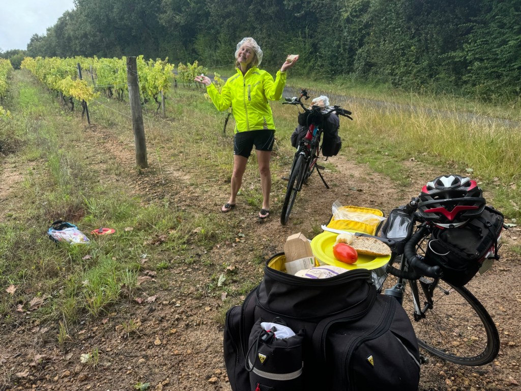 Today started (rather harshly) with a long, long hill and our day ended with an even longer hill, with more hills along the way, so now it feels far more than 49 miles. The final hill was a real challenge in the heat but with the prize of an absolutely stunning village at the end. We crossed open plains and cycled through quirky tunnels cut through mountains. We looked forward to cycling through ‘Miranda de Ebro’ as it’s such a lovely name, but were disappointed to find it was busy and dense with factories and noisy roads, bearing no resemblance to its beautiful name. At the start of the day I felt a little ominous about the rain clouds over the mountains, but by lunchtime they cleared giving us blue skies over vast plains full of sunflowers as the day heated up. No complaints! And I had a yet another puncture in a rather desolate and probably deprived area. A little old lady walked down the empty street in the distance while Neil fixed my bike so I took a photo. And finally the last long hill brought us to this beautiful ancient village where they’ve made salt since long before Roman times. It’s steeped in history which we’re about to explore. The Romans certainly have left their mark through most of the places we’ve cycled. We’ve encountered so many long straight road which seem to go on forever. I prefer bends, guessing what might lie around the corner! When we reached our destination, Neil was so hot he headed straight to the nearest bar for a beer while I checked the bikes in etc. He absolutely deserved that beer as it was a 7 km steady climb in the heat. Well done Neil. All in all, a good day.